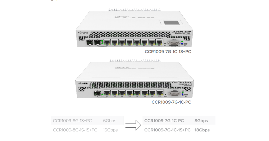 CCR1009-7G-1C-1S+ | CCR1009 series 1.2 GHz IPsec throughput | ||||||